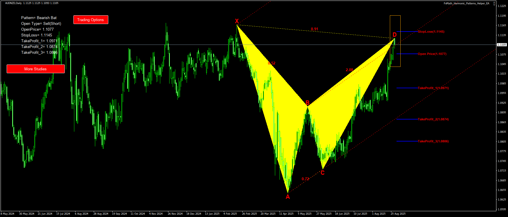 @AUDNZD(D1)-Pattern: Bat : SellStop@: 1.1077, StopLoss: 1.1145, TakeProfit_1: 1.0971, TakeProfit_2: 1.0874, TakeProfit_3: 1.0806-2025.08.28 10:24