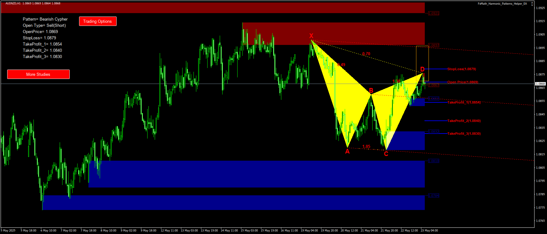 @AUDNZD(H1)-Pattern: Cypher : SellStop@: 1.0869, StopLoss: 1.0879, TakeProfit_1: 1.0854, TakeProfit_2: 1.0840, TakeProfit_3: 1.0830