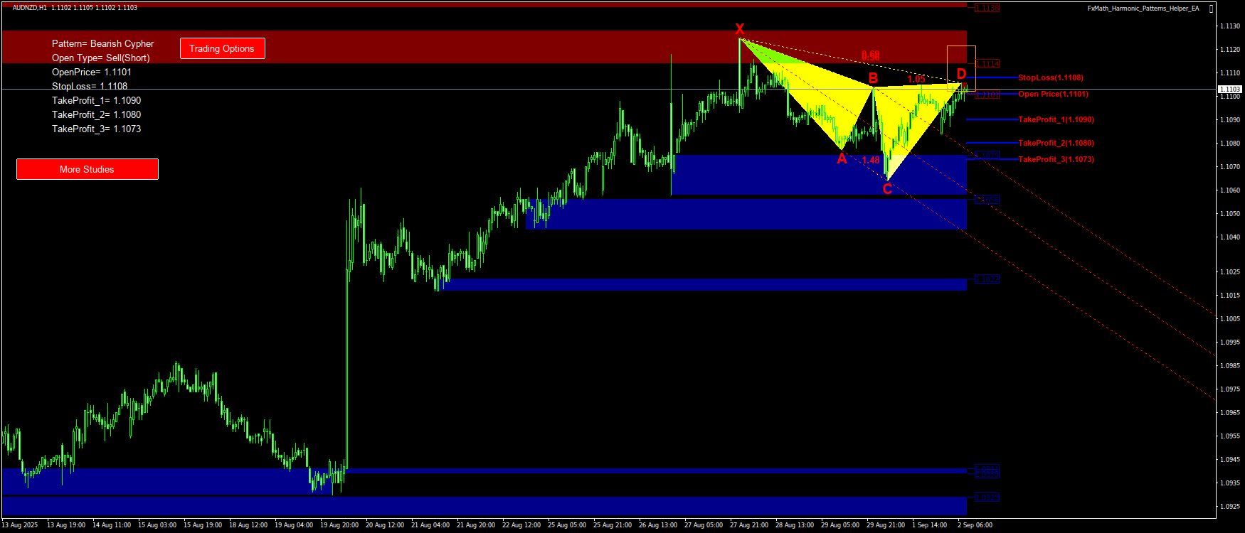 @AUDNZD(H1)-Pattern: Cypher : SellStop@: 1.1101, StopLoss: 1.1108, TakeProfit_1: 1.1090, TakeProfit_2: 1.1080, TakeProfit_3: 1.1073