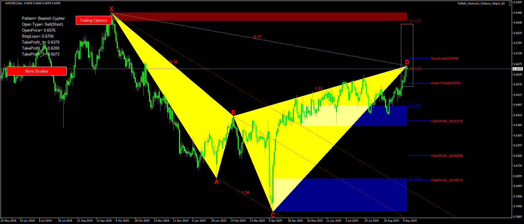@AUDUSD(D1)-Pattern: Cypher : SellStop@: 0.6576, StopLoss: 0.6704, TakeProfit_1: 0.6379, TakeProfit_2: 0.6200, TakeProfit_3: 0.6073