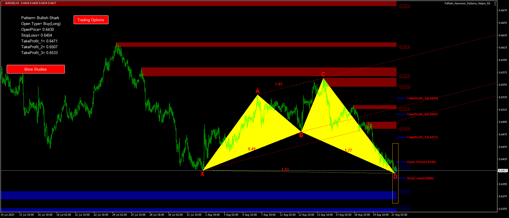 @AUDUSD(H1)-Pattern: Shark : BuyStop@: 0.6430, StopLoss: 0.6404, TakeProfit_1: 0.6471, TakeProfit_2: 0.6507, TakeProfit_3: 0.6533-2025.08.21 10:27
