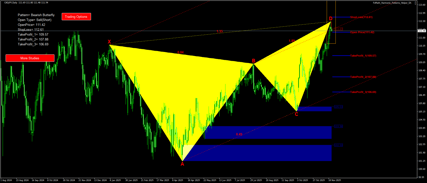 @CADJPY(D1)-Pattern: Butterfly : SellStop@: 111.42, StopLoss: 112.61, TakeProfit_1: 109.57, TakeProfit_2: 107.88, TakeProfit_3: 106.69-2025.11.21 07:55
