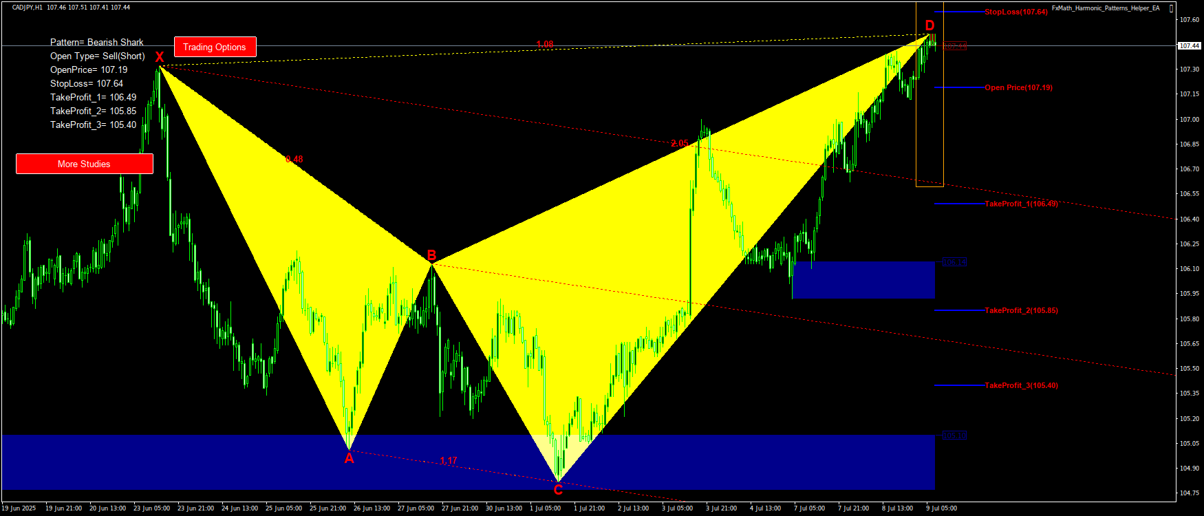 @CADJPY(H1)-Pattern: Shark : SellStop@: 107.19, StopLoss: 107.64, TakeProfit_1: 106.49, TakeProfit_2: 105.85, TakeProfit_3: 105.40