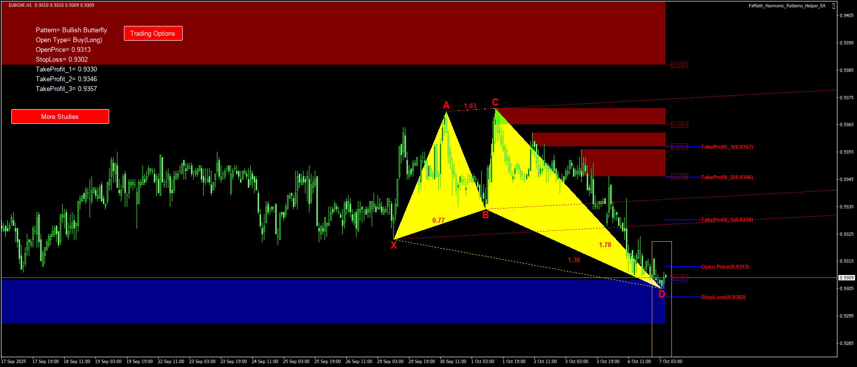 @EURCHF(H1)-Pattern: Butterfly : BuyStop@: 0.9313, StopLoss: 0.9302, TakeProfit_1: 0.9330, TakeProfit_2: 0.9346, TakeProfit_3: 0.9357