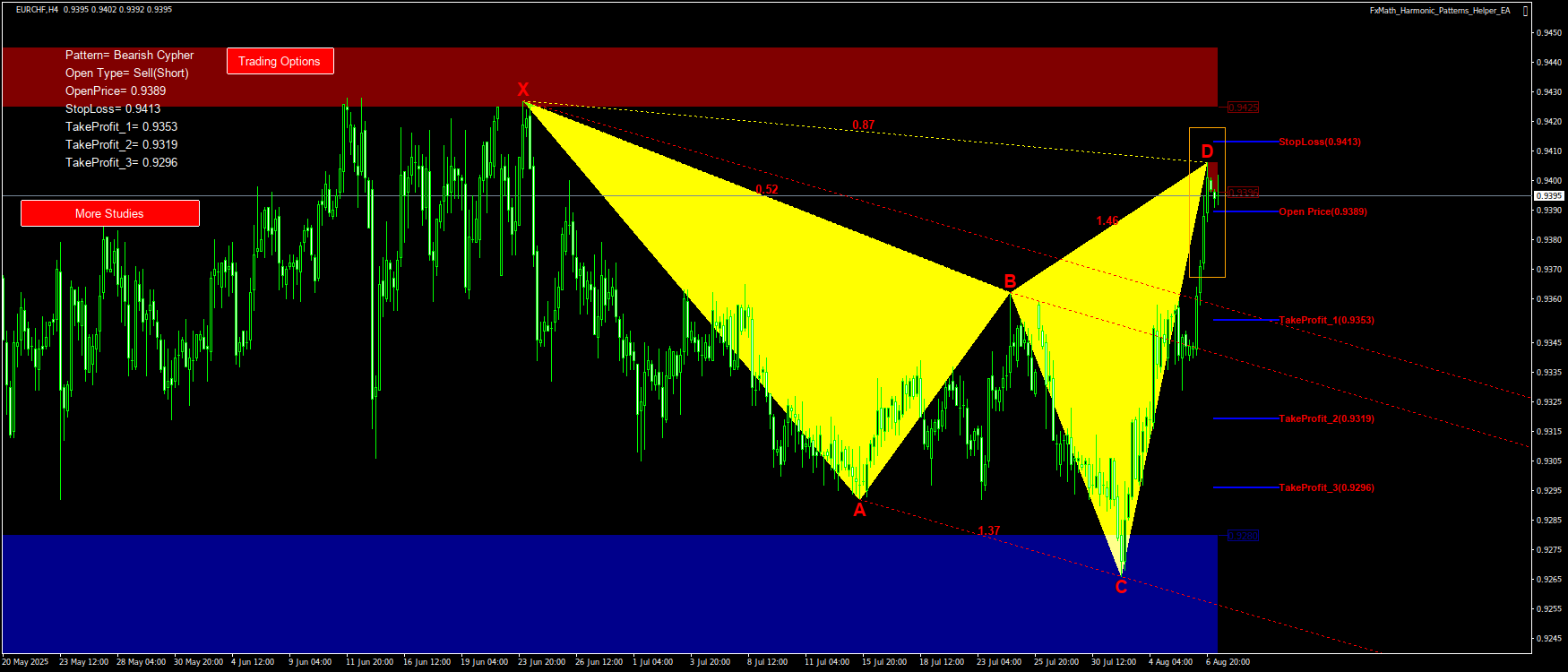 @EURCHF(H4)-Pattern: Cypher : SellStop@: 0.9389, StopLoss: 0.9413, TakeProfit_1: 0.9353, TakeProfit_2: 0.9319, TakeProfit_3: 0.9296