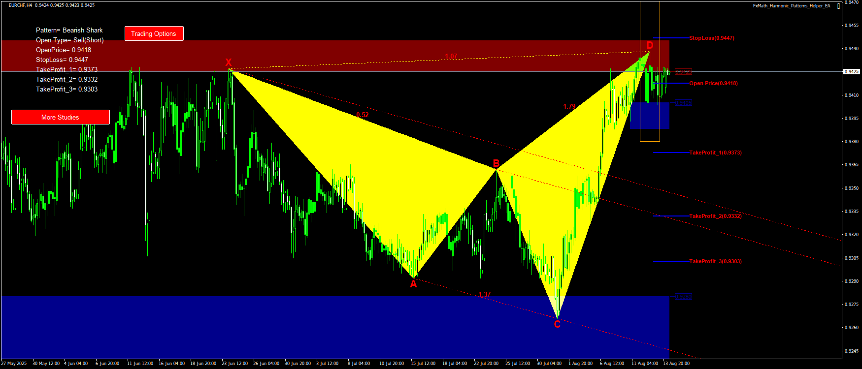 @EURCHF(H4)-Pattern: Shark : SellStop@: 0.9418, StopLoss: 0.9447, TakeProfit_1: 0.9373, TakeProfit_2: 0.9332, TakeProfit_3: 0.9303