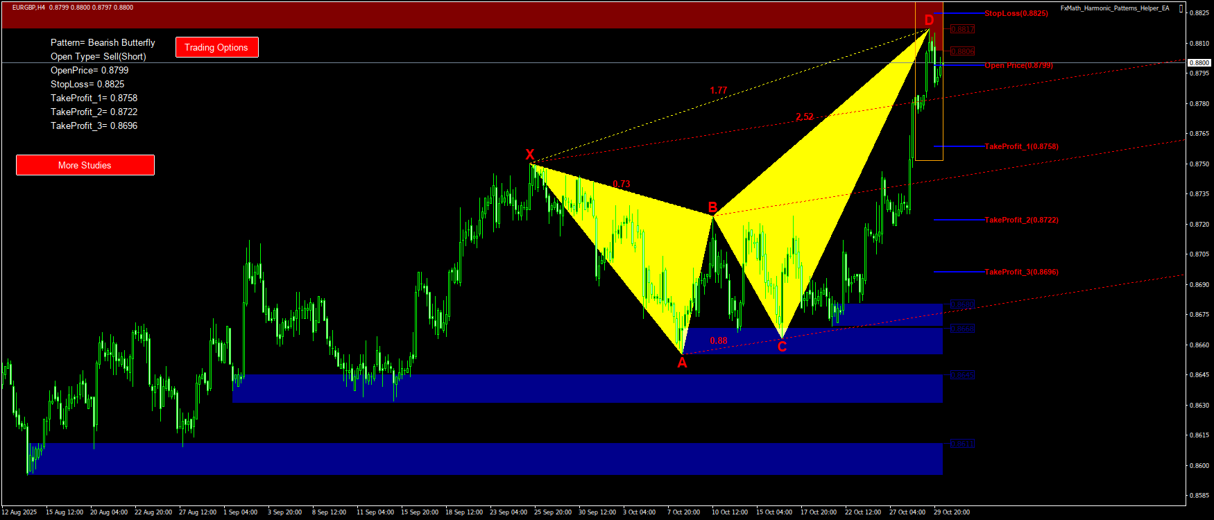 @EURGBP(H4)-Pattern: Butterfly : SellStop@: 0.8799, StopLoss: 0.8825, TakeProfit_1: 0.8758, TakeProfit_2: 0.8722, TakeProfit_3: 0.8696-2025.10.30 08:11