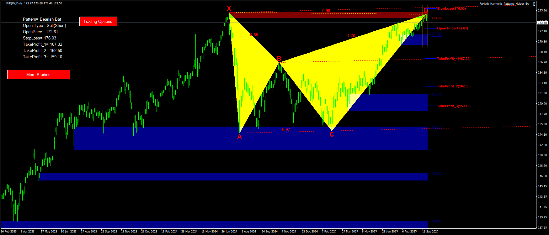 @EURJPY(D1)-Pattern: Bat : SellStop@: 172.61, StopLoss: 176.03, TakeProfit_1: 167.32, TakeProfit_2: 162.50, TakeProfit_3: 159.10-2025.10.01 06:13