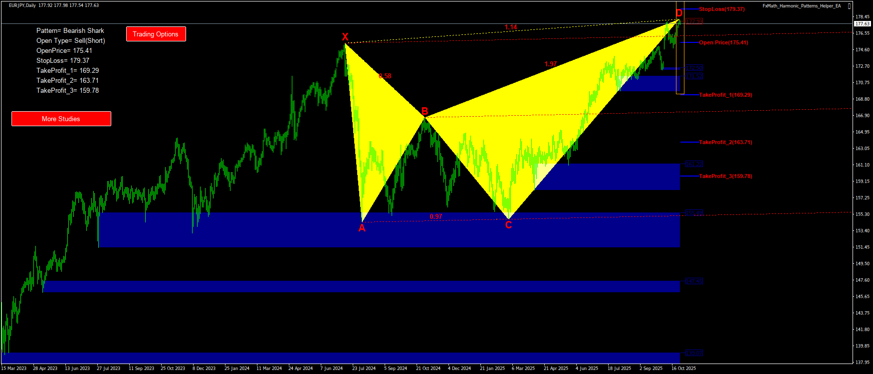 @EURJPY(D1)-Pattern: Shark : SellStop@: 175.41, StopLoss: 179.37, TakeProfit_1: 169.29, TakeProfit_2: 163.71, TakeProfit_3: 159.78-2025.10.28 05:24