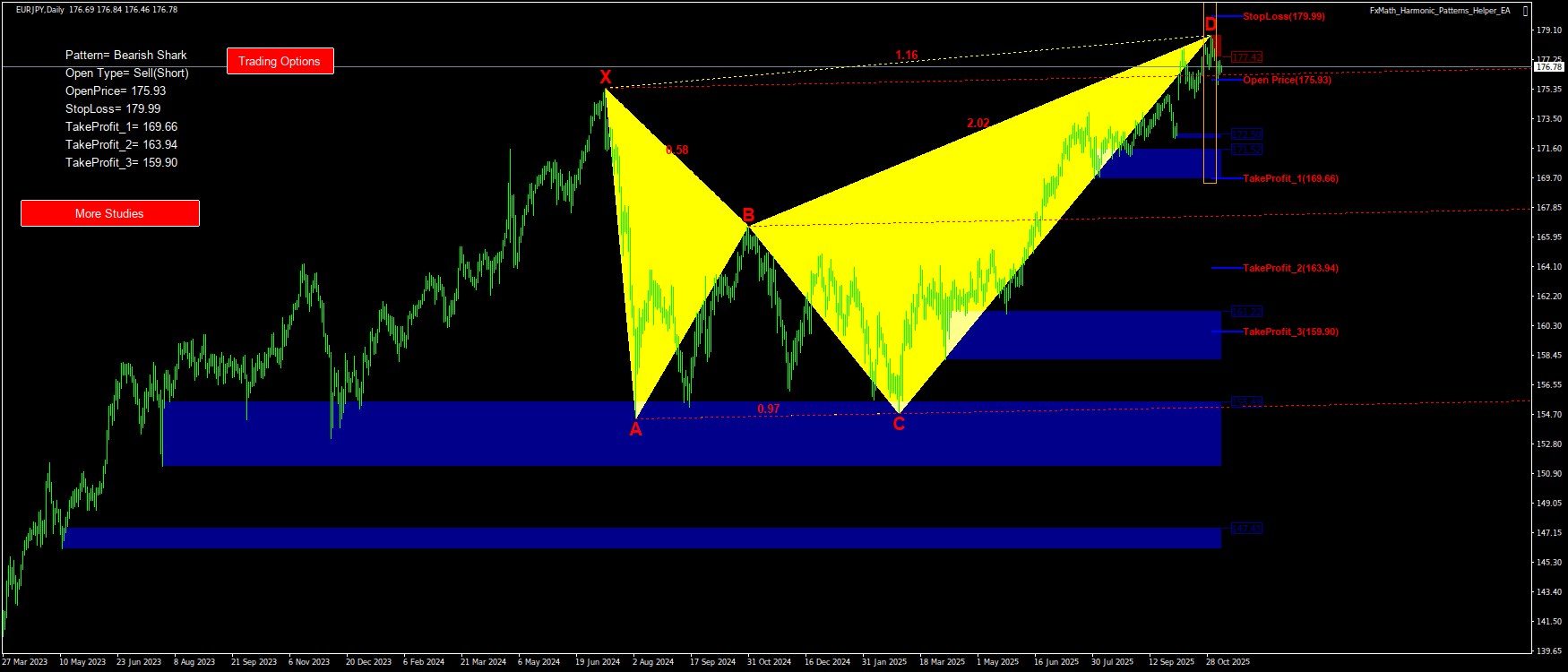 @EURJPY(D1)-Pattern: Shark : SellStop@: 175.93, StopLoss: 179.99, TakeProfit_1: 169.66, TakeProfit_2: 163.94, TakeProfit_3: 159.90-2025.11.07 07:53