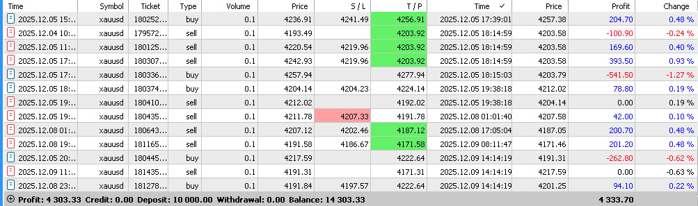 Recent performance results highlight its strength: in just 7 trading days, FxMath Gold AI Elite (Standard) generated +4,333 pips net profit. Running at 0.1 lot per $10,000 balance, this translates to $4,333 profit or an impressive 43% net gain in one week.