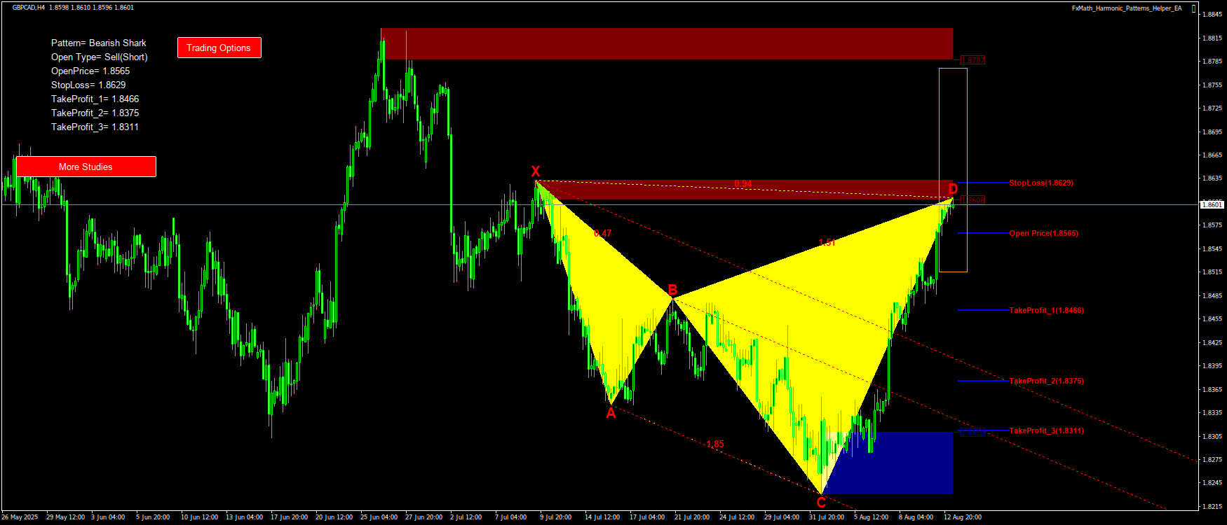 @GBPCAD(H4)-Pattern: Shark : SellStop@: 1.8565, StopLoss: 1.8629, TakeProfit_1: 1.8466, TakeProfit_2: 1.8375, TakeProfit_3: 1.8311