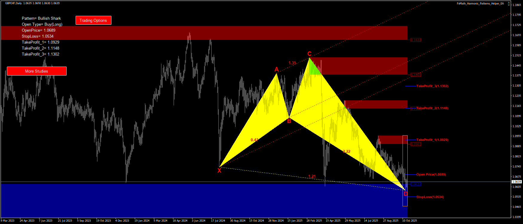 @GBPCHF(D1)-Pattern: Shark : BuyStop@: 1.0689, StopLoss: 1.0534, TakeProfit_1: 1.0929, TakeProfit_2: 1.1148, TakeProfit_3: 1.1302-2025.10.22 06:20