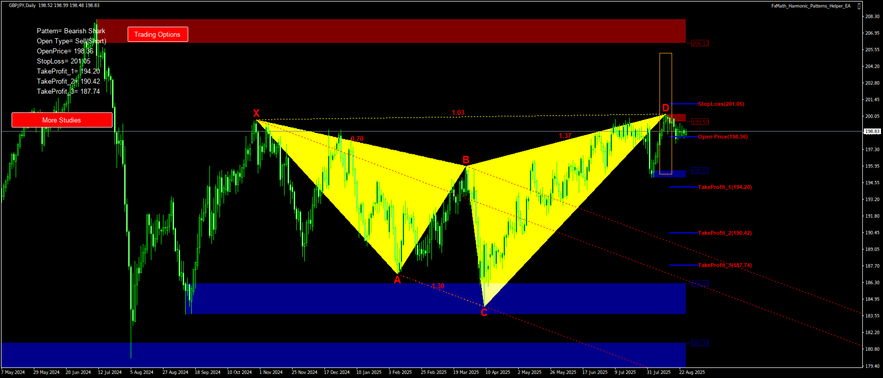 @GBPJPY(D1)-Pattern: Shark : SellStop@: 198.36, StopLoss: 201.05, TakeProfit_1: 194.20, TakeProfit_2: 190.42, TakeProfit_3: 187.74-2025.08.27 10:23