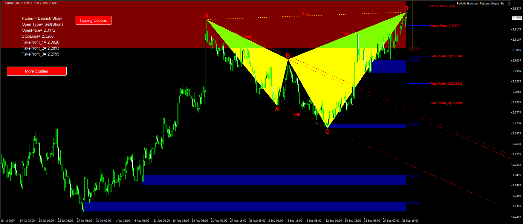 @GBPNZD(H4)-Pattern: Shark : SellStop@: 2.3172, StopLoss: 2.3266, TakeProfit_1: 2.3026, TakeProfit_2: 2.2893, TakeProfit_3: 2.2799