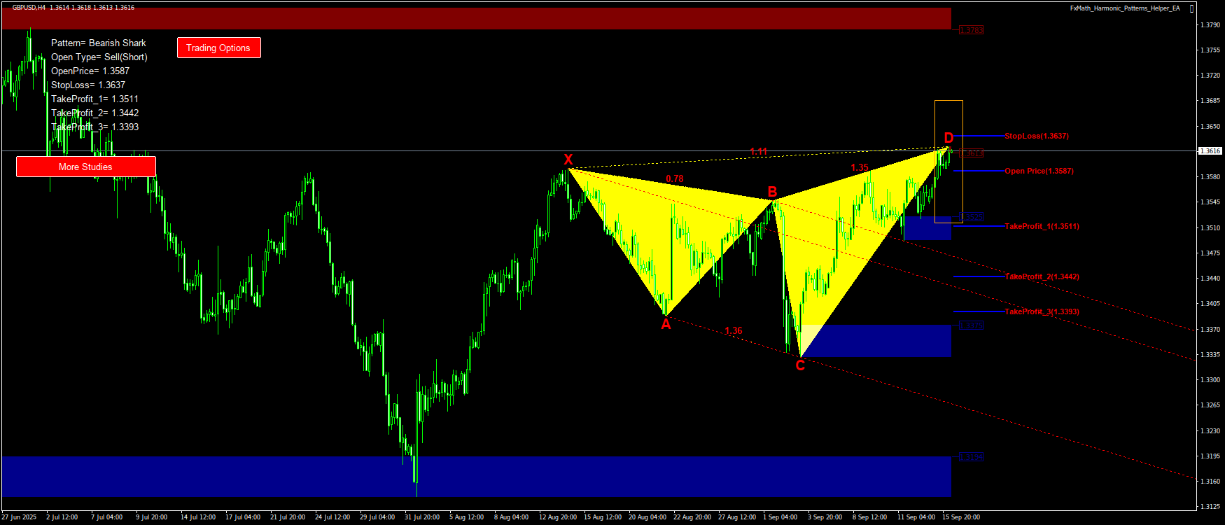 @GBPUSD(H4)-Pattern: Shark : SellStop@: 1.3587, StopLoss: 1.3637, TakeProfit_1: 1.3511, TakeProfit_2: 1.3442, TakeProfit_3: 1.3393