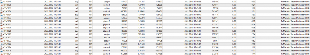 In FxMath AI Trader Dashboard we have trade buttons on the chart for Open Trade for single pair, all signals for one Time Frames, or open all signals on the chart.