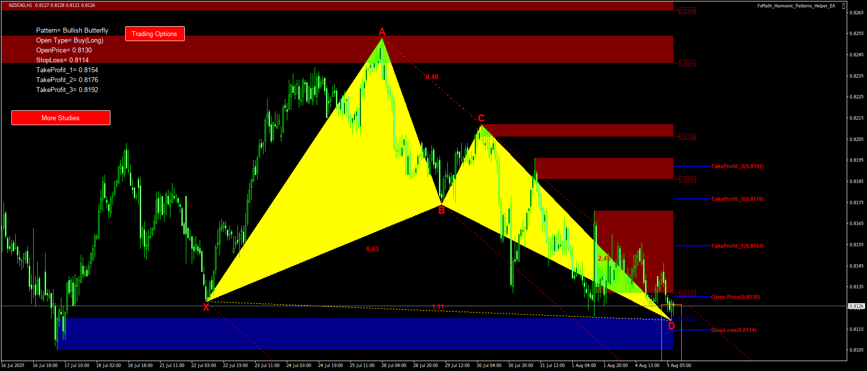 @NZDCAD(H1)-Pattern: Butterfly : BuyStop@: 0.8130, StopLoss: 0.8114, TakeProfit_1: 0.8154, TakeProfit_2: 0.8176, TakeProfit_3: 0.8192
