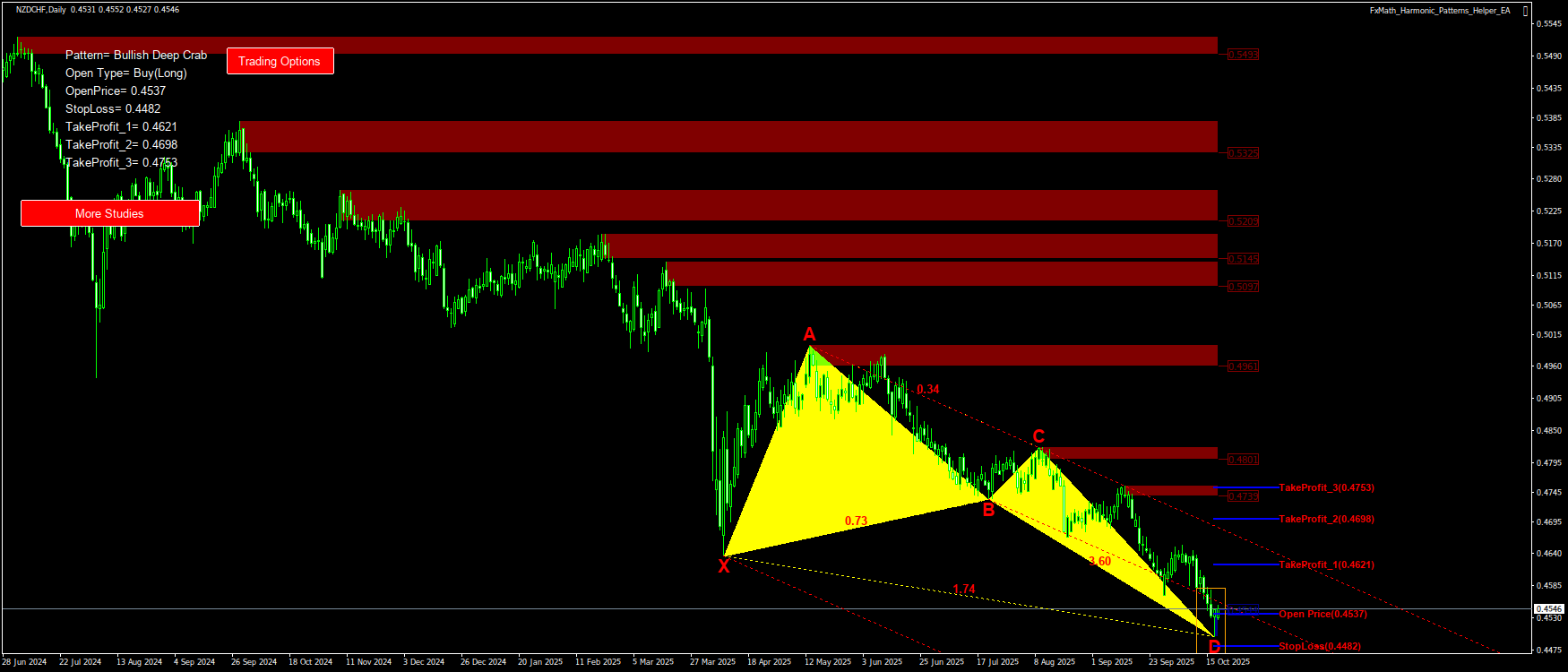 @NZDCHF(D1)-Pattern: Deep Crab : BuyStop@: 0.4537, StopLoss: 0.4482, TakeProfit_1: 0.4621, TakeProfit_2: 0.4698, TakeProfit_3: 0.4753