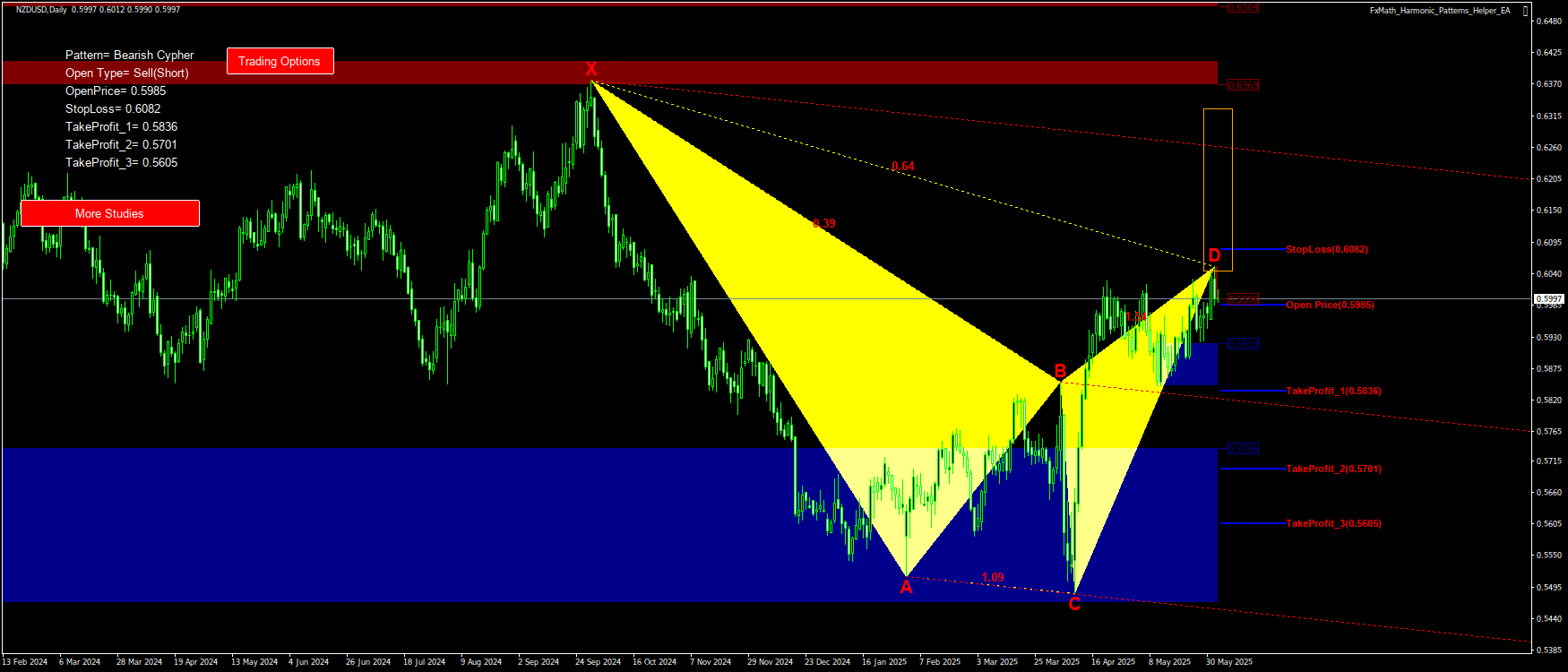 @NZDUSD(D1)-Pattern: Cypher : SellStop@: 0.5985, StopLoss: 0.6082, TakeProfit_1: 0.5836, TakeProfit_2: 0.5701, TakeProfit_3: 0.5605