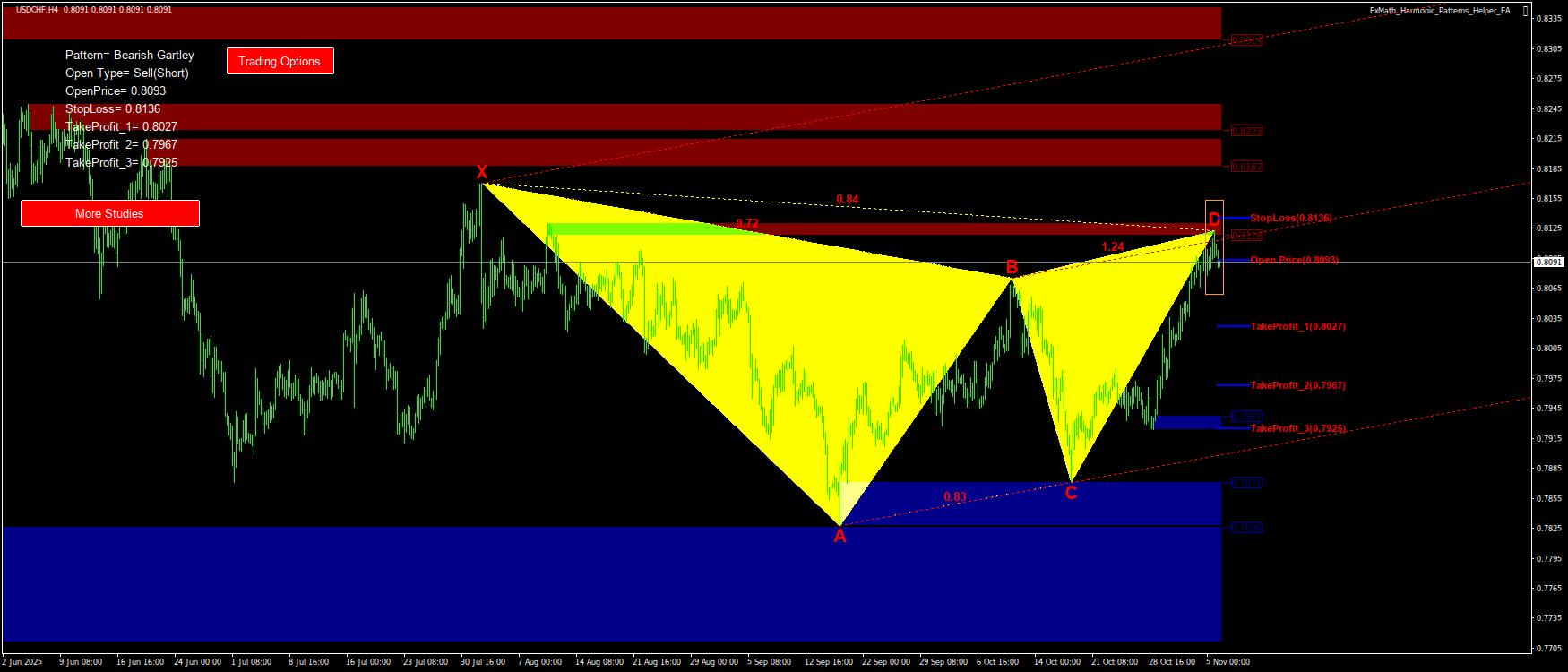 @USDCHF(H4)-Pattern: Gartley : SellStop@: 0.8093, StopLoss: 0.8136, TakeProfit_1: 0.8027, TakeProfit_2: 0.7967, TakeProfit_3: 0.7925