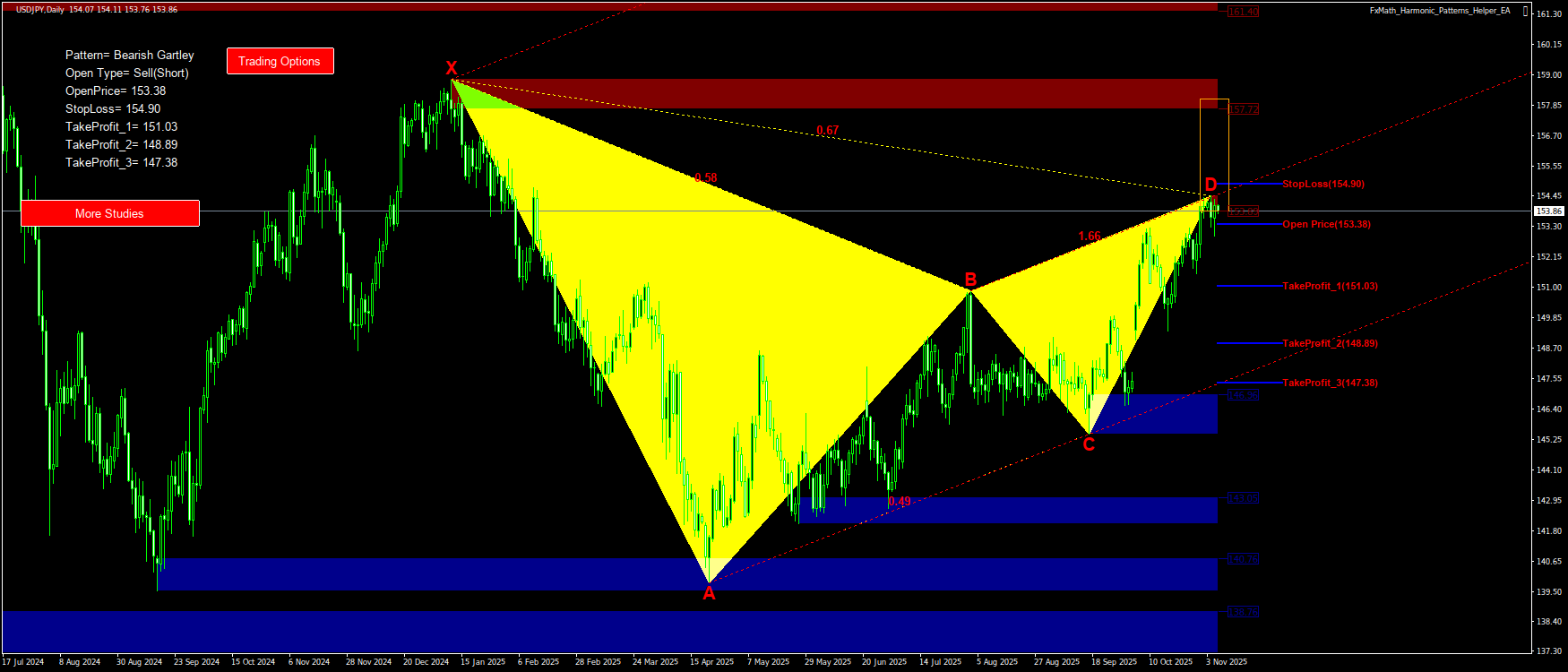 @USDJPY(D1)-Pattern: Gartley : SellStop@: 153.38, StopLoss: 154.90, TakeProfit_1: 151.03, TakeProfit_2: 148.89, TakeProfit_3: 147.38