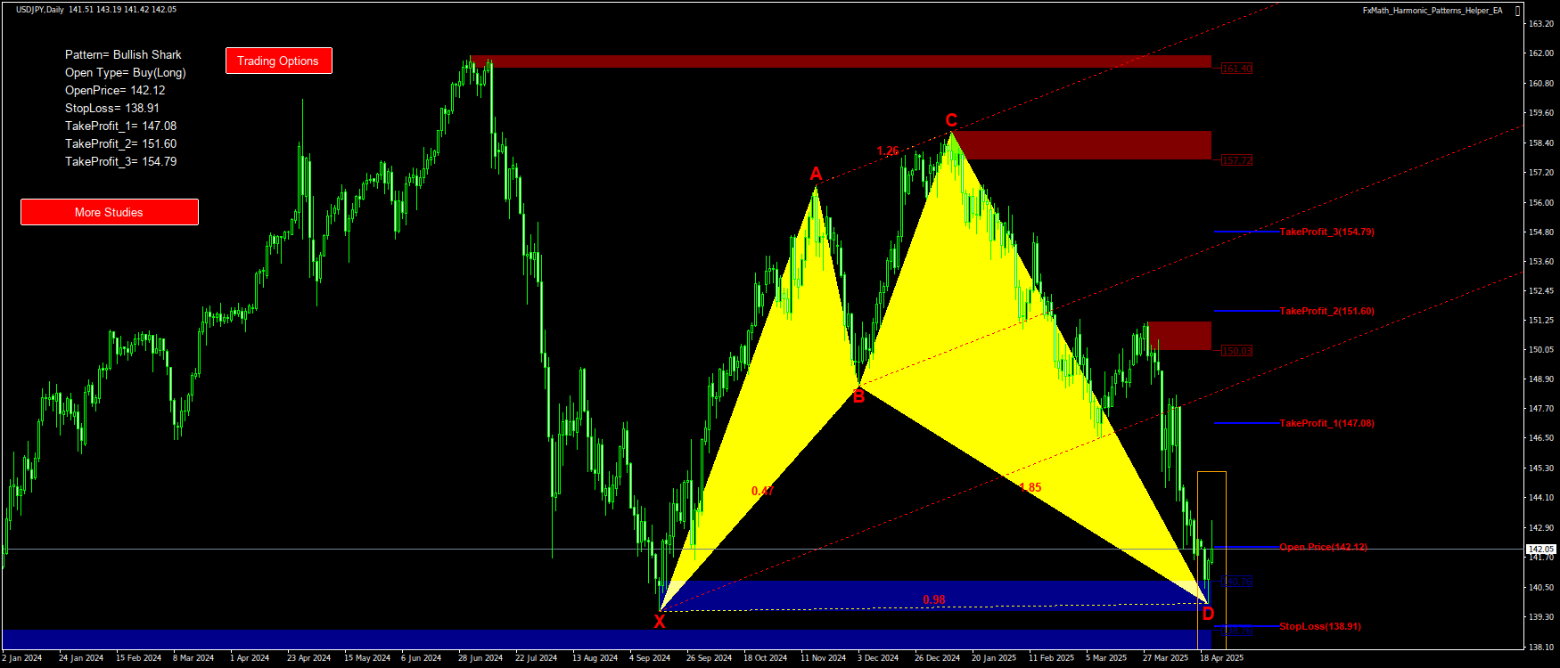 @USDJPY(D1)-Pattern: Shark : BuyStop@: 142.12, StopLoss: 138.91, TakeProfit_1: 147.08, TakeProfit_2: 151.60, TakeProfit_3: 154.79